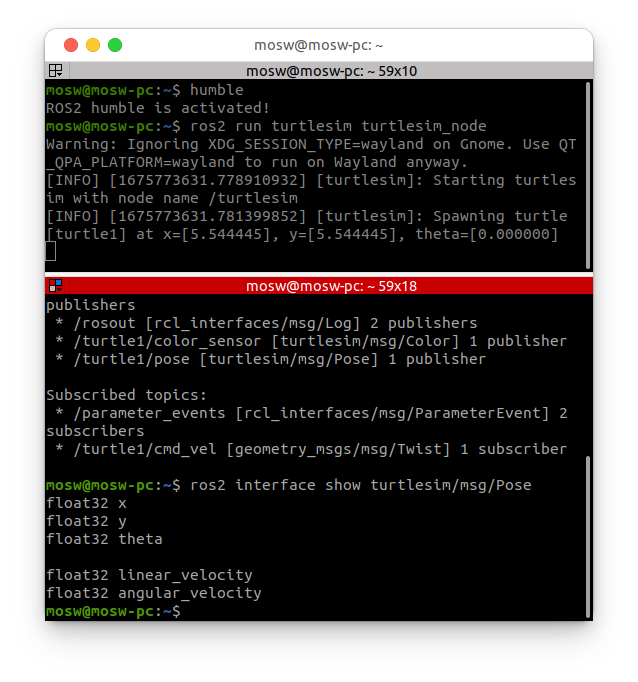 ์ด ๊ธ์์๋ Ch3์ ๋์ค๋ ๋ด์ฉ์ธ ROS2 ๊ธฐ๋ณธ ๋ช ๋ น ์ตํ๊ธฐ๋ฅผ ์์๋ณด๋ ค๊ณ ํ๋ค. ๋จผ์ ๊ธฐ๋ณธ์ ์ธ ๊ฒ๋ค์ ๋ฐฐ์ฐ๊ธฐ ์ํด์ turtlesim์ด๋ผ๋ ํจํค์ง๋ก ์ด์ผ๊ธฐ๋ฅผ ์์ํ๊ฒ ๋๋ค.