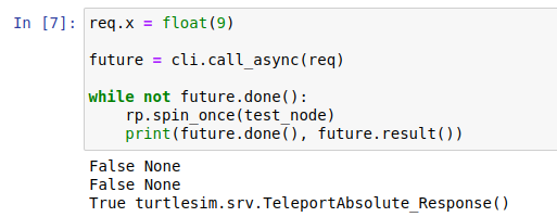 ๋ฐ๋ผ์ ๋ค์์ ์ฝ๋๋ฅผ ํตํด์ future.done()์ด ์ ๊ณตํ๋ ์๋ฃ๊ฐ ๋ํ๋๋ future.done()์ด True๊ฐ ๋ ๋๊น์ง spin_once๋ฅผ ๊ณ์ ์คํ ํ ๋ค ์๋ฃ ๋๋ฉด Responce()๊ฐ ๋ช ์๋์ด ์๋น์ค๋ฅผ ์๋ฃ์ํจ๋ค.
