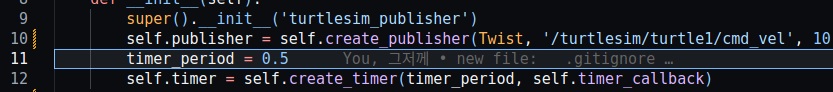 self.publisher = self.create_publisher(Twist, '/turtle1/cmd_vel', 10)