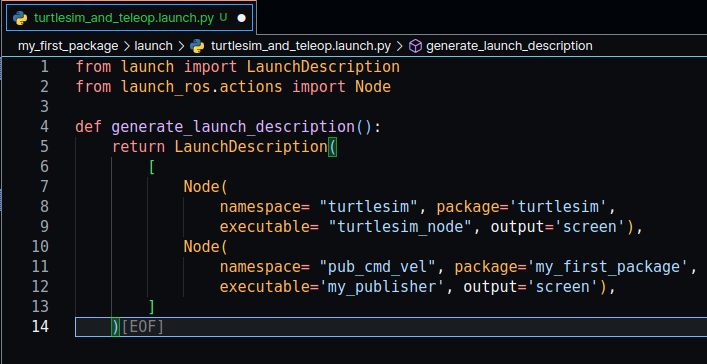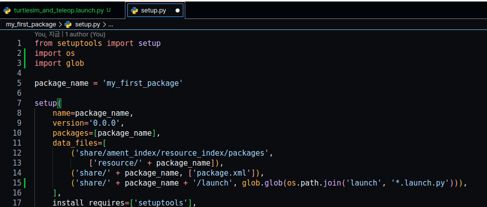 my_first_package ํด๋์ launch ํด๋๋ฅผ ๋ง๋ค๊ณ ๋ค์๊ณผ ๊ฐ์ ํ์ผ์ ์์ฑํ๋ค.