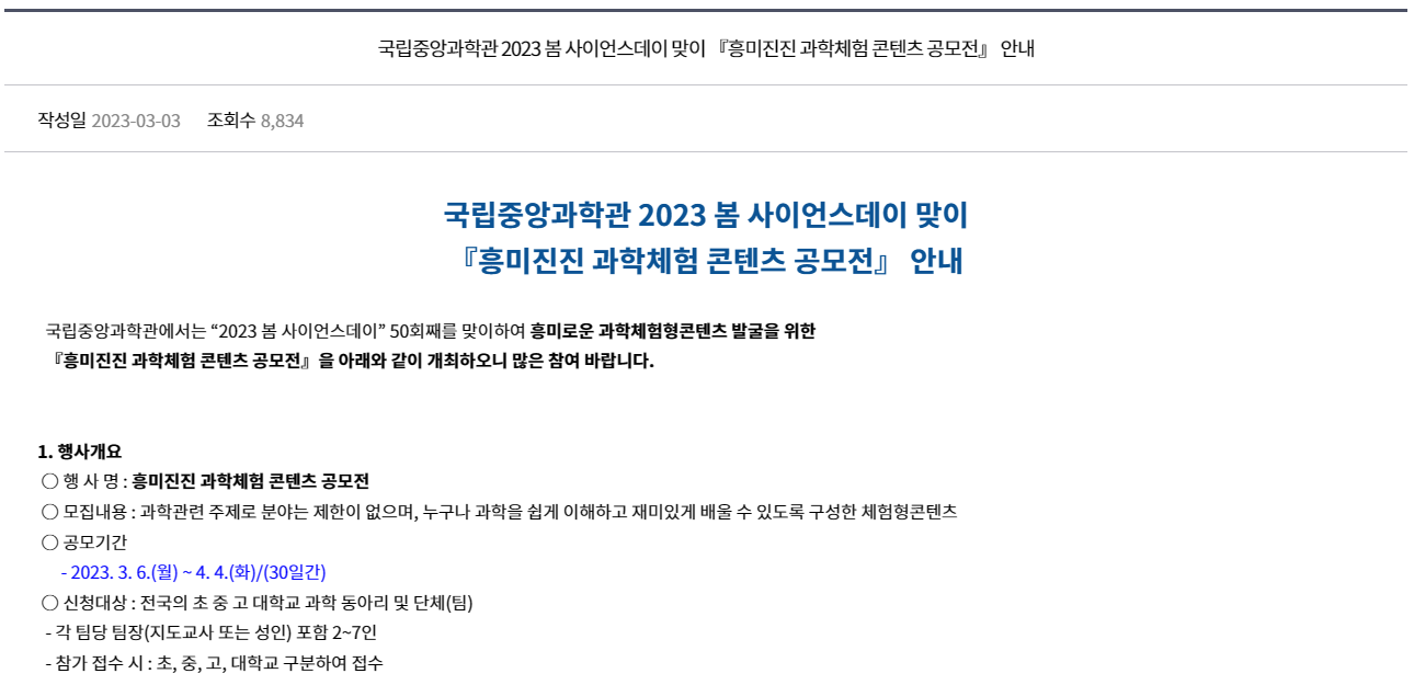 2023๋ 3์.. ์ด๋๋ ๊ตญ๋ฆฝ์ค์๊ณผํ๊ด์ ์ฌ๋ผ์จ ๊ณต๊ณ ๋ฅผ ๋ดค๋ค.